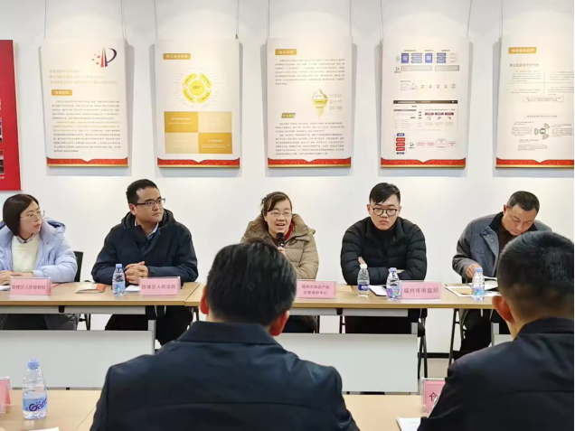 、福州市知识产权发展保护中心、鼓楼区人民检察院、鼓楼区人民法院、仓山区公检法司部门、仓山区市场监管局、仓山区新闻出版局、建新镇政府、福州市城南烟草专卖局、金山街道丽景社区、福建江夏学院法学院、福建省知识产权协会、“知创福建”知识产权公共服务平台在仓山区联合召开知识产权协同保护研讨会议。